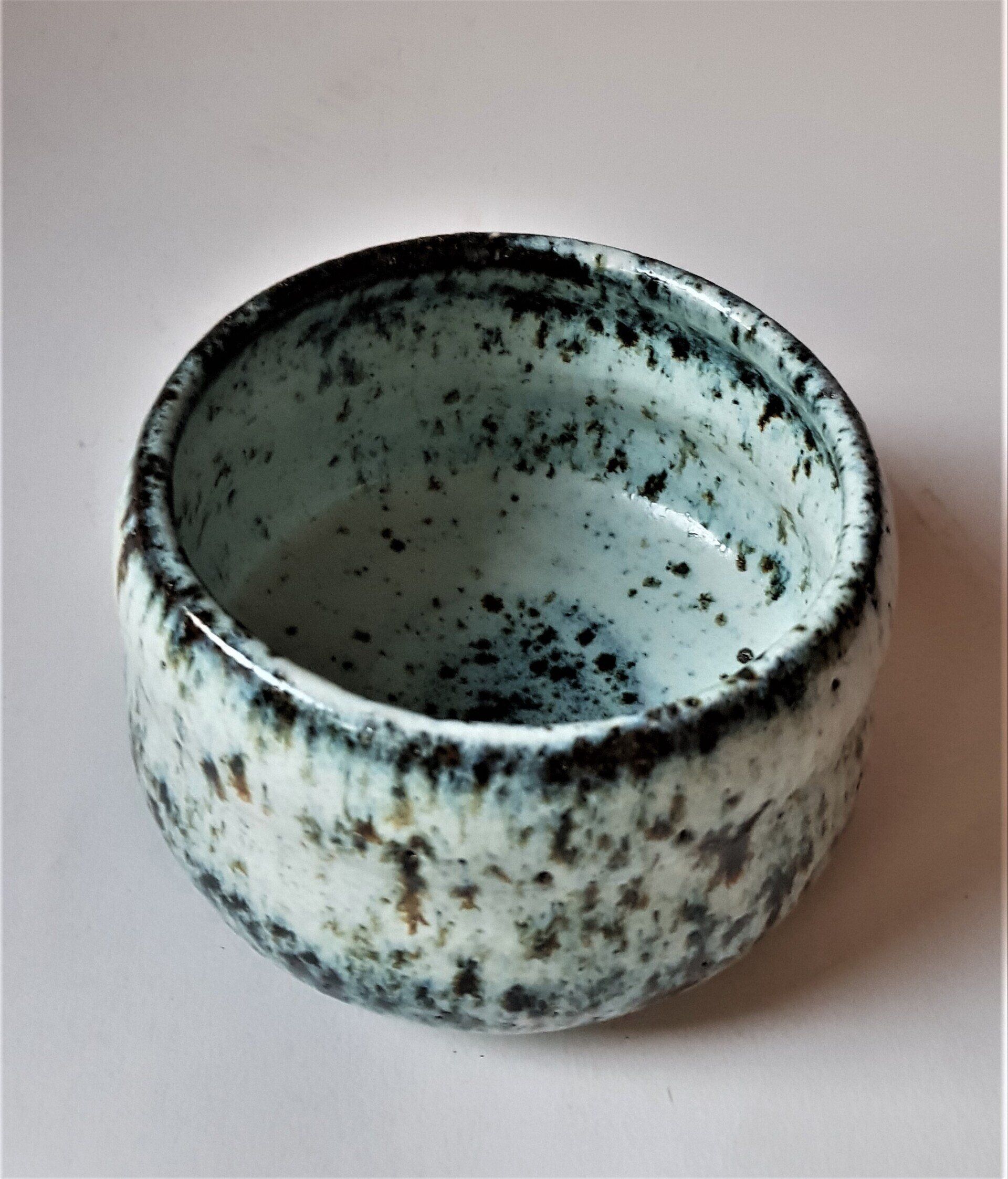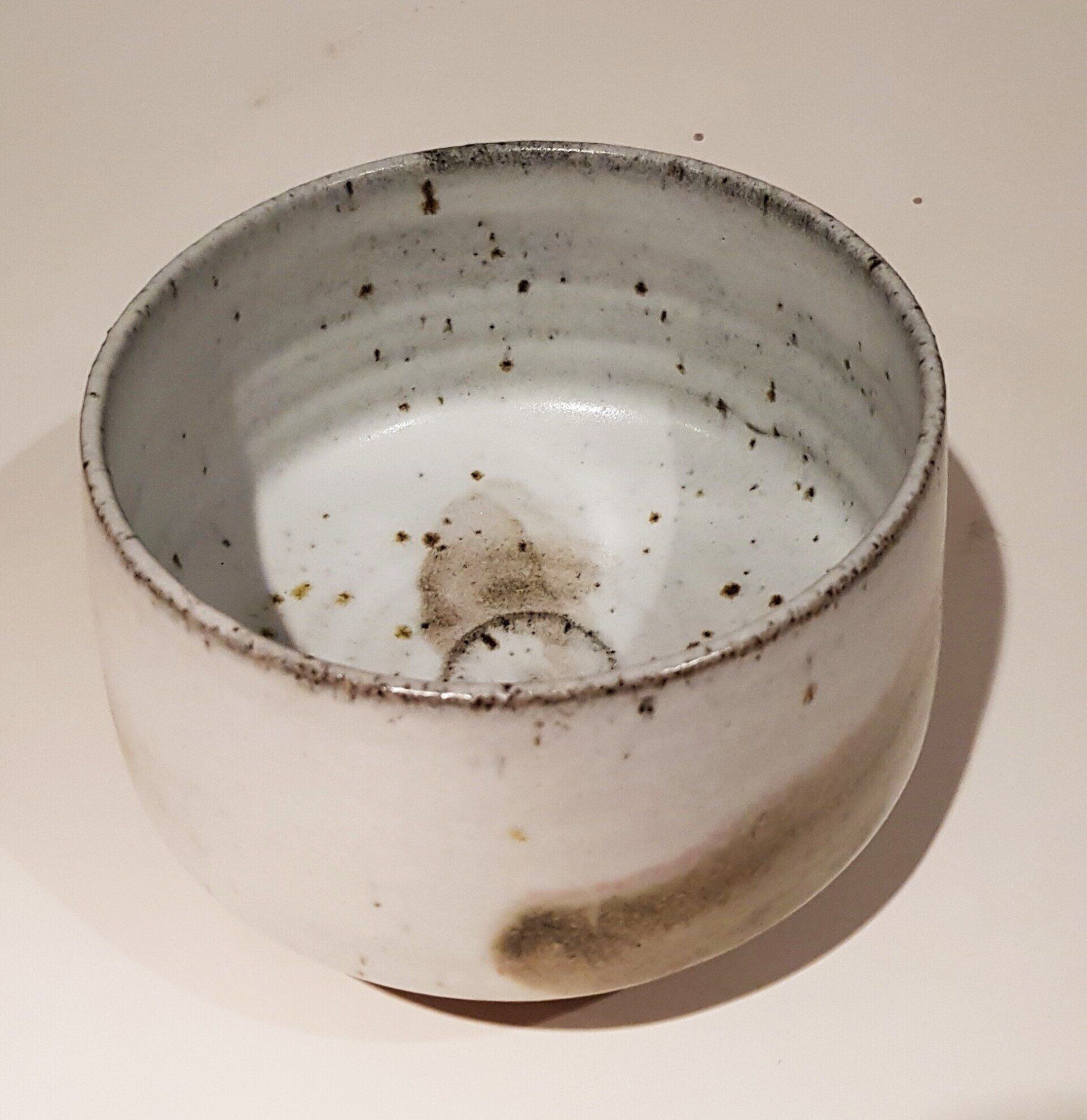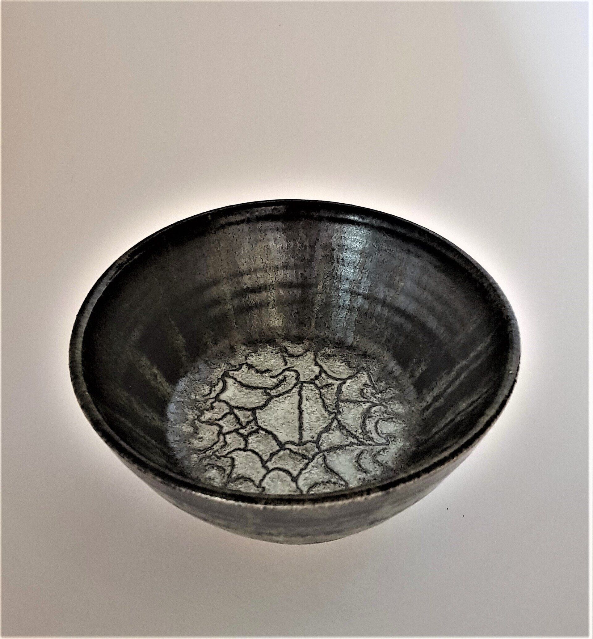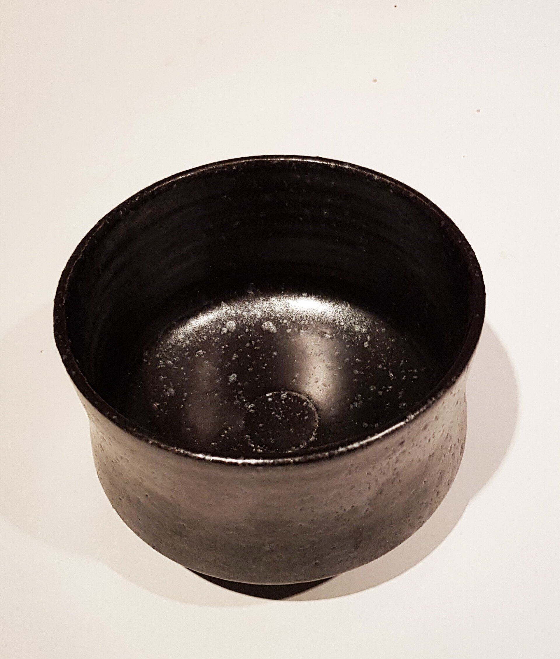 Chawan- veldspaat glazuur met klei- rivier slib- wax resist deco-1280°-Red: 125 euro