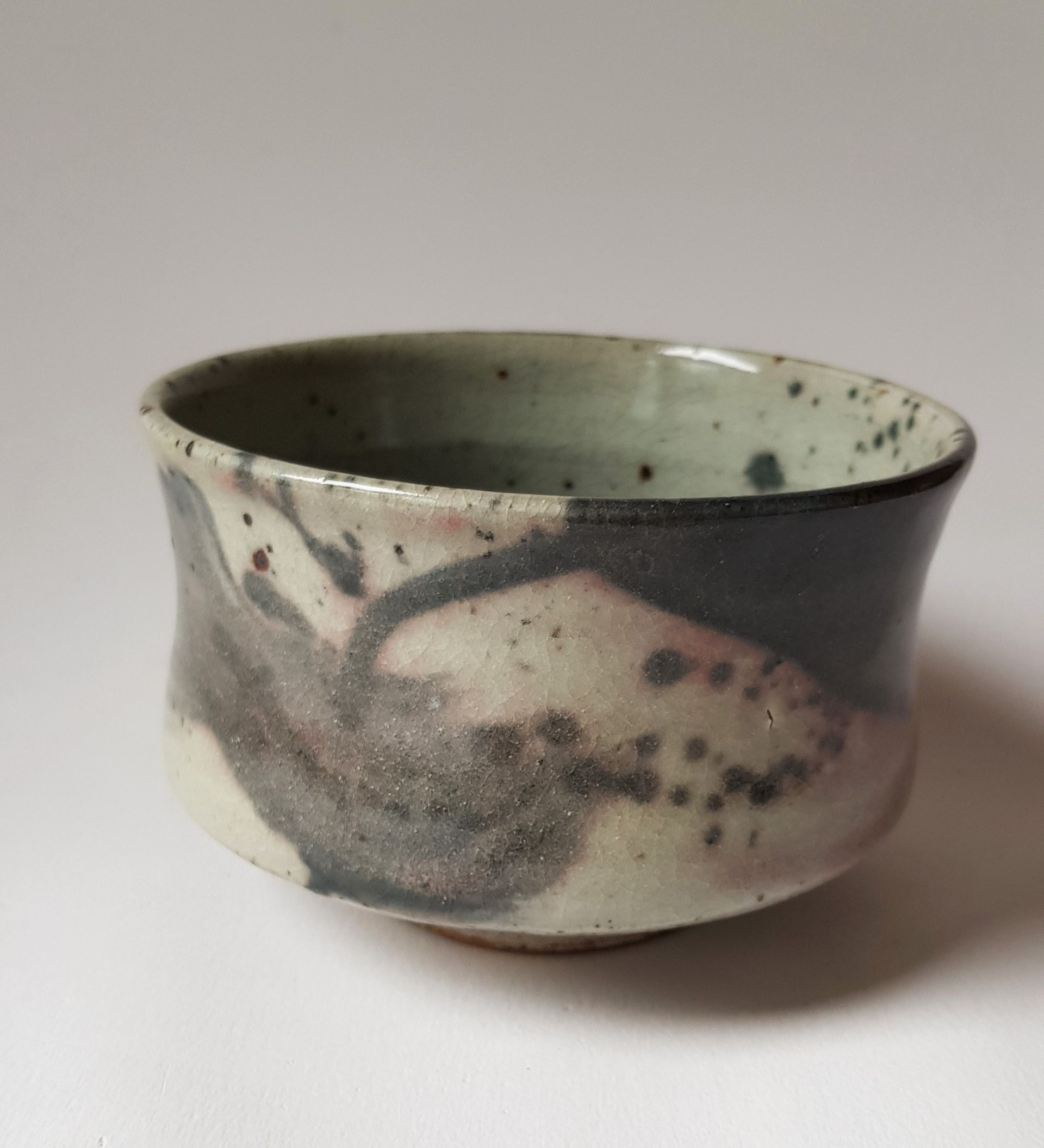 Chawan- ash- glaze strow- with copper- reduction deco- 1280°- Red:
